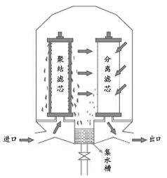 ----聚结滤芯和分离滤芯,当介质流经其内部需经过过滤、聚结、沉